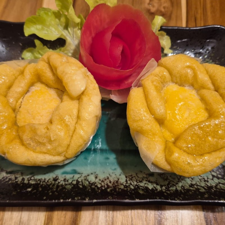 Pão ao vapor tailandes com recheio doce de chá thai 2 UNIDADES