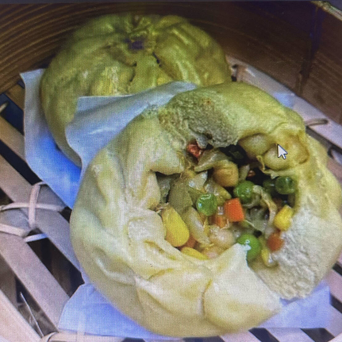 Pao ao vapor rechio com repolho,cenoura,milho verde, shitake,sal,acucar,proteina de soja pimenta do reino 2 unidades