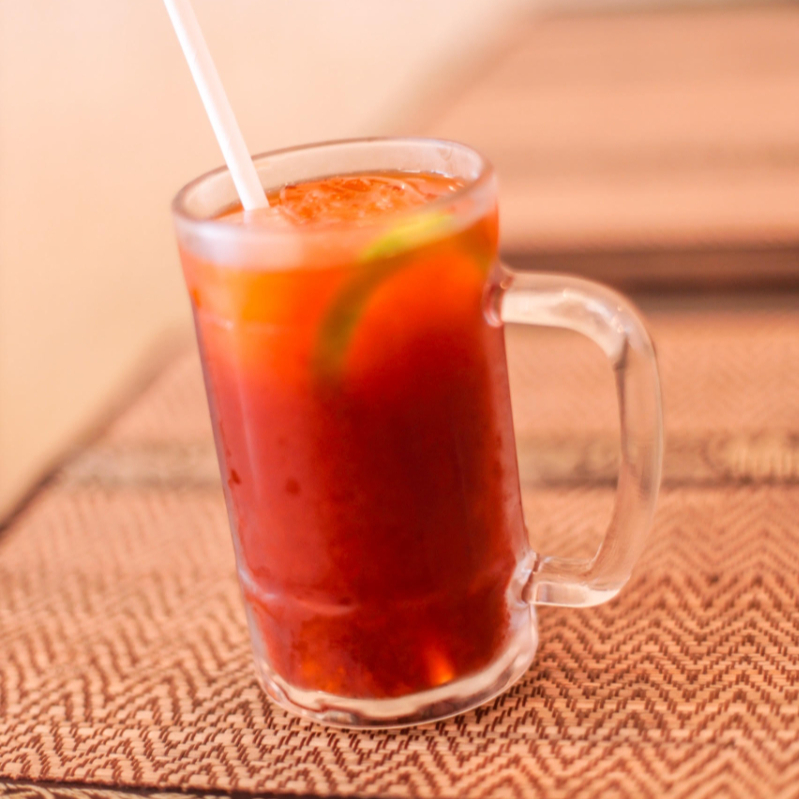 Talharim de arroz preparado com molho de tamarindo, molho agridoce, ovos, frango, cebola roxa, cenoura, broto de feijão e cebolinha. acompanha amendoim e limão. adocicado. (pequeno) E Chá com limão (chá thai) 500 ml