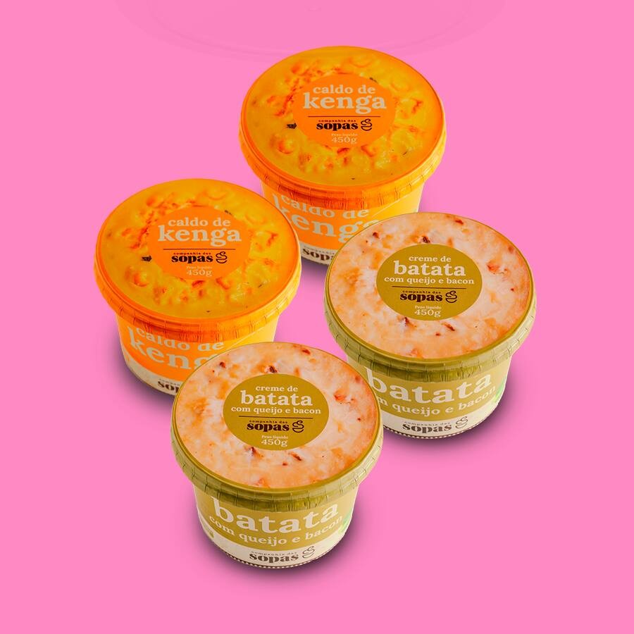 Direto do famoso Festival Ceagesp para sua mesa! Combo com as deliciosas sopas e caldos congelados nos sabores Caldo Verde, Canja de Galinha, Creme de Mandioquinha e Sopa de Letrinhas.