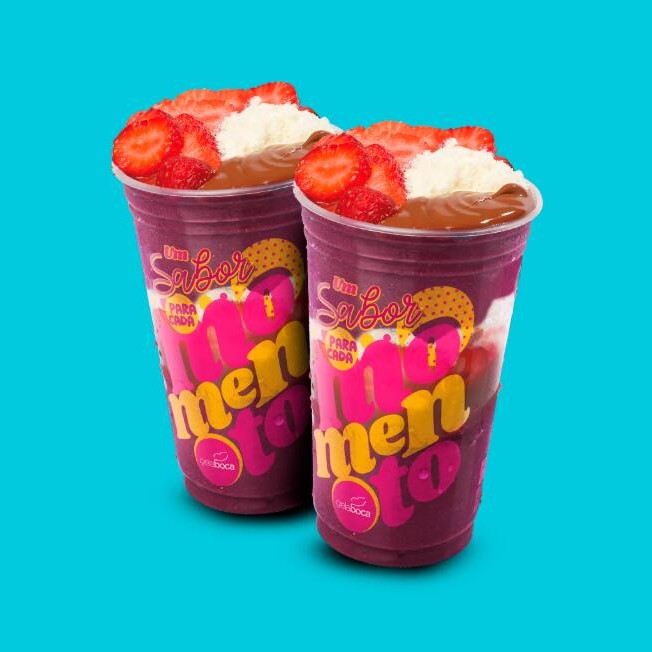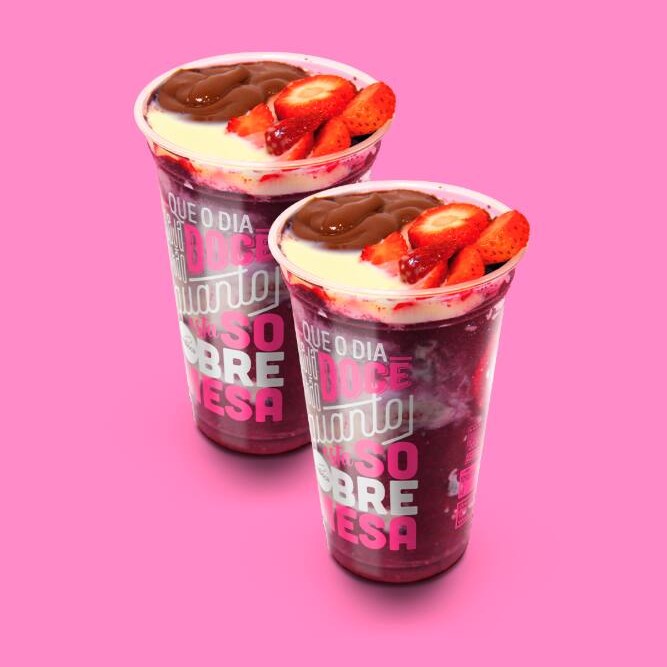 Combo com 2 copos de 300ml, cada um com até 2 adicionais grátis. Perfeito para dividir ou saborear em dobro!