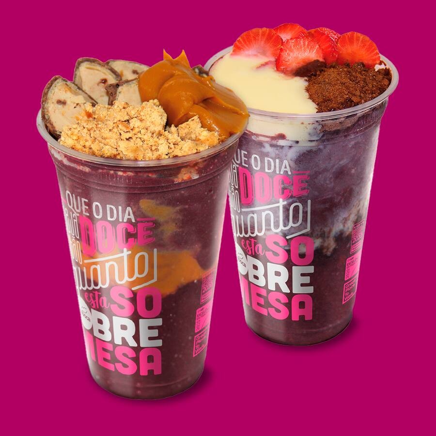 Combo com 2 copos de 500ml, cada um com até 3 adicionais grátis. Personalize cada copo com seus acompanhamentos favoritos e aproveite esse super combo!