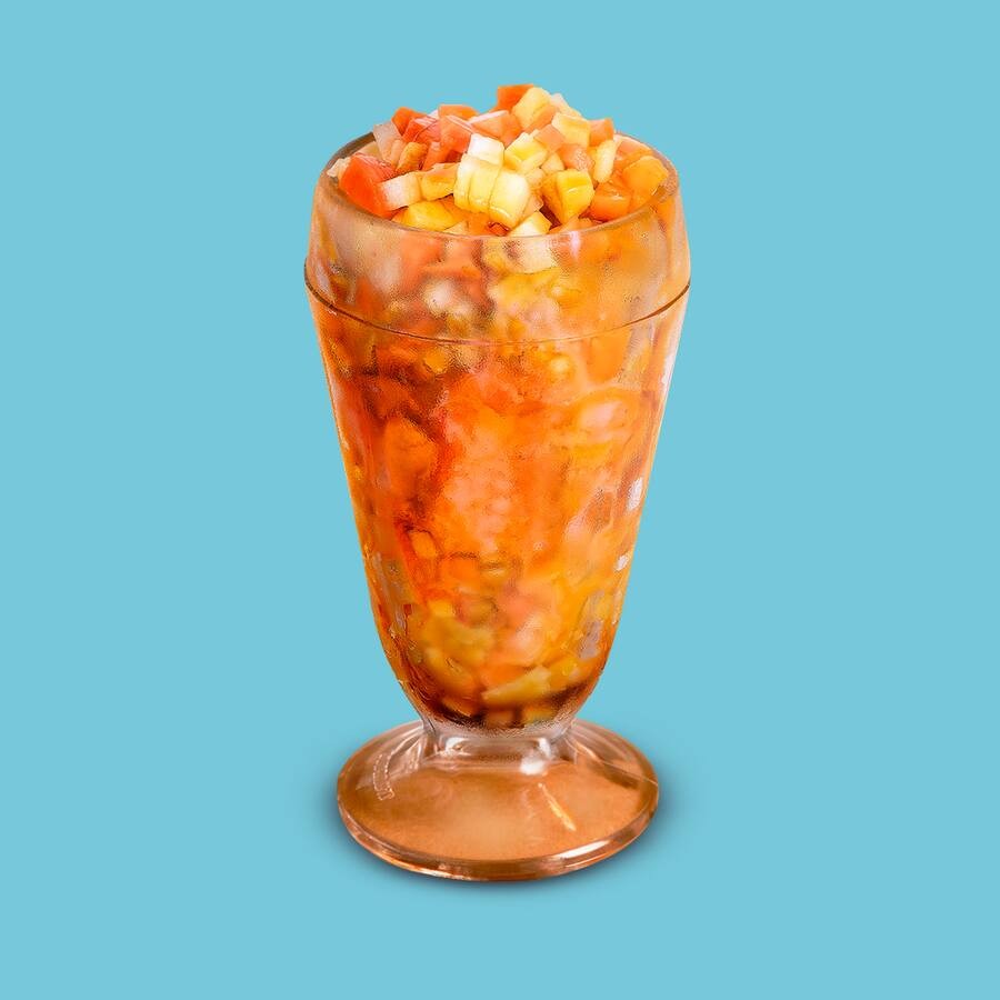 A harmonia perfeita de frutas com sorvete! Desfrute da nossa salada de frutas com maçã, melão e mamão, com a opção de adicionar 1 bola de sorvete e uma deliciosa cobertura de caramelo. Uma combinação leve e saborosa!