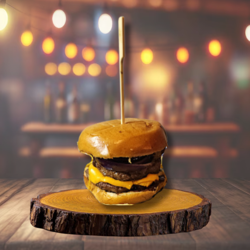 Pão de brioche macio e levemente tostado, abraçando dois hambúrgueres artesanais de 120g cada, feitos com carne bovina suculenta e preparados no ponto perfeito. Camadas generosas de mussarela derretida, bacon crocante cheio de sabor e cebola roxa fresca, que traz um leve toque adocicado e equilibrado. Para finalizar, tudo é envolvido por molho barbecue marcante, que entrega aquele sabor defumado irresistível em cada mordida. 🔥 Grande, suculento e intenso. Um hambúrguer para quem gosta de sabor de verdade!