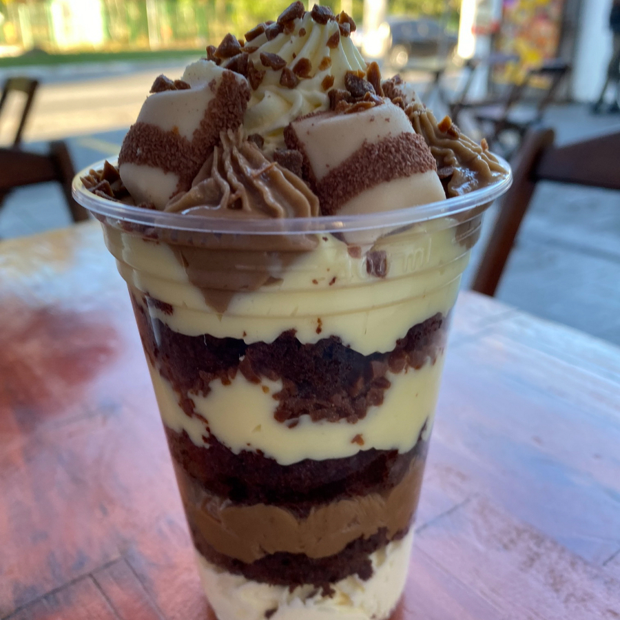 Massa crocante, chantilly, creme e delicioso recheio, porção individual