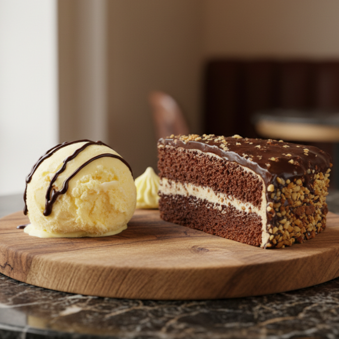 DELICIOSA MASSA LEVEMENTE DOCE + PORÇÃO DE SORVETE