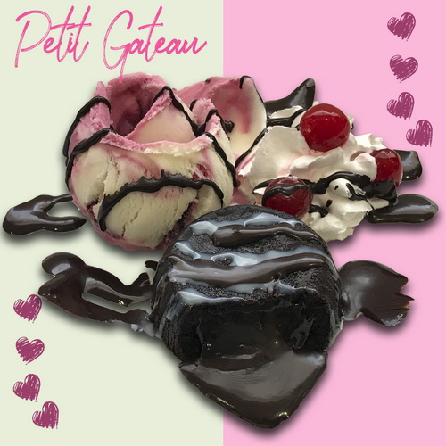 Delicioso bolinho de chocolate sorvete e chantilly Obs. O bolinho deve ser esquentado em microondas por 15 segundos.
