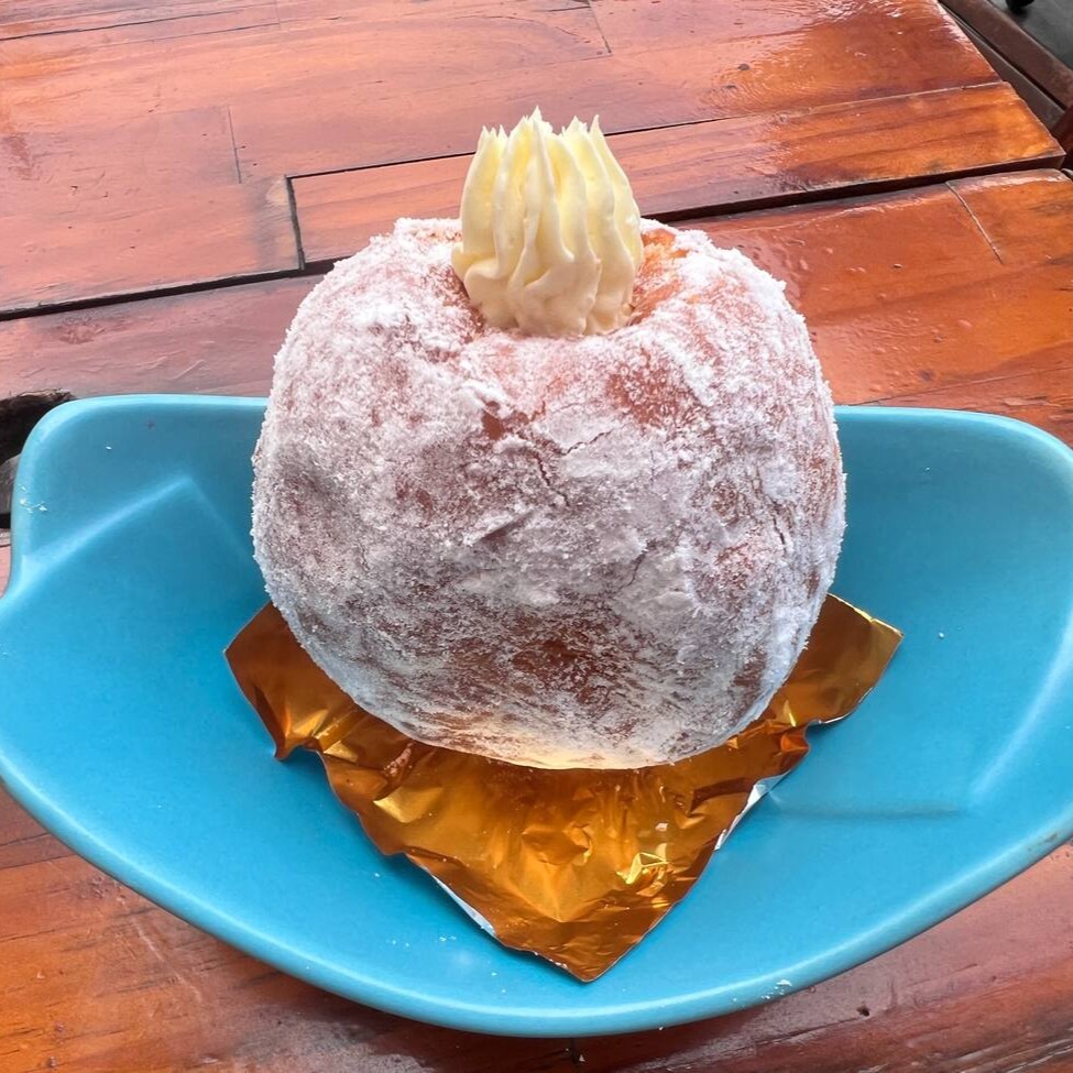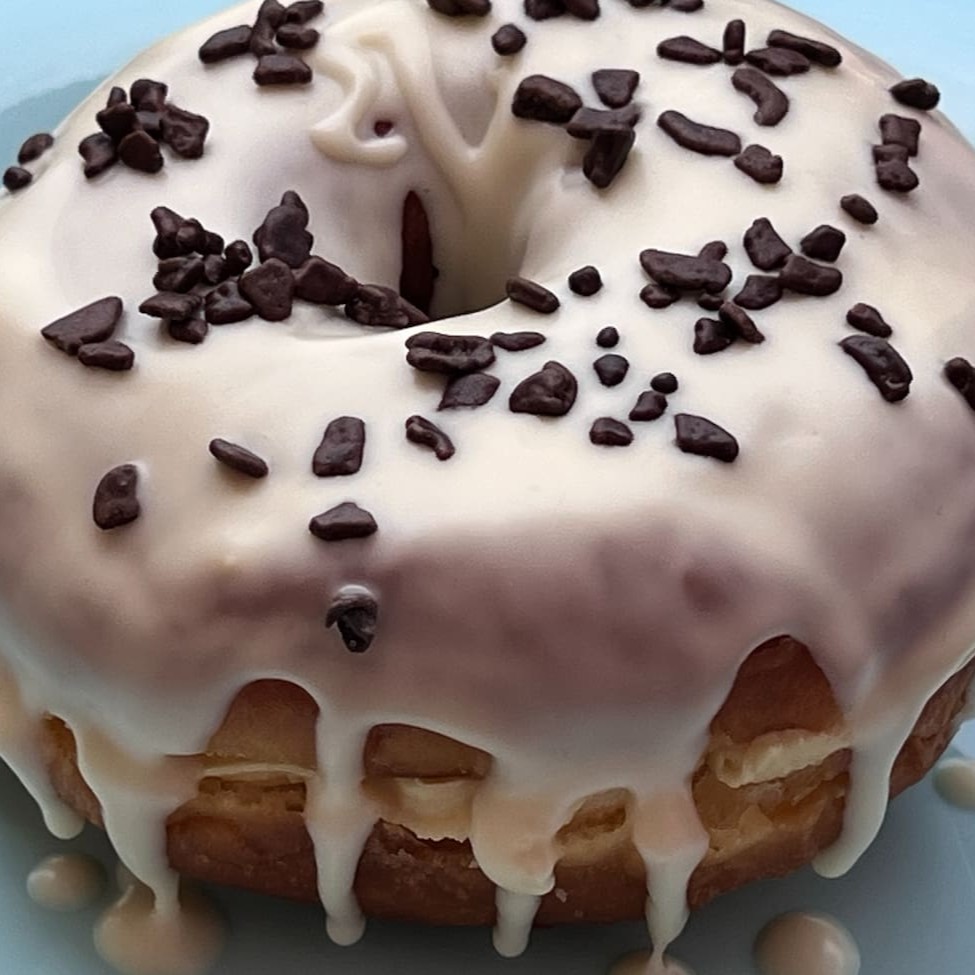 Donut fofo e dourado, recheado de um delicioso creme de Leite Ninho, trazendo uma cremosidade irresistível a cada mordida. A cobertura é feita com uma generosa camada chocolate branco e polvilhada com leite em pó, proporcionando aquele toque suave e doce característico.