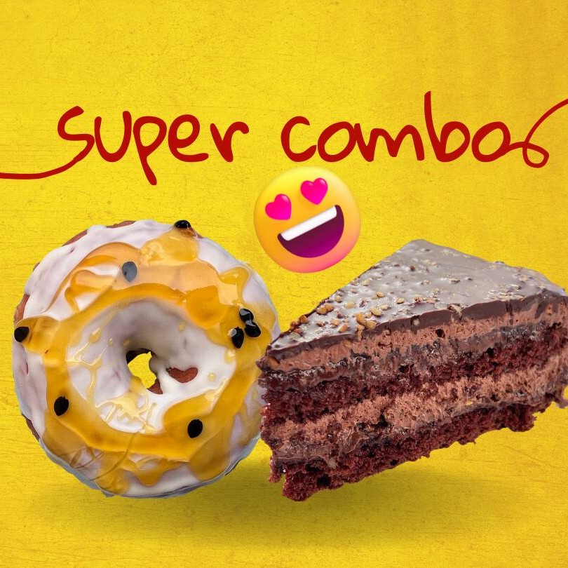 Escolha seu Donut favorito + uma deliciosa fatia de bolo Aproveite o precinho especial!