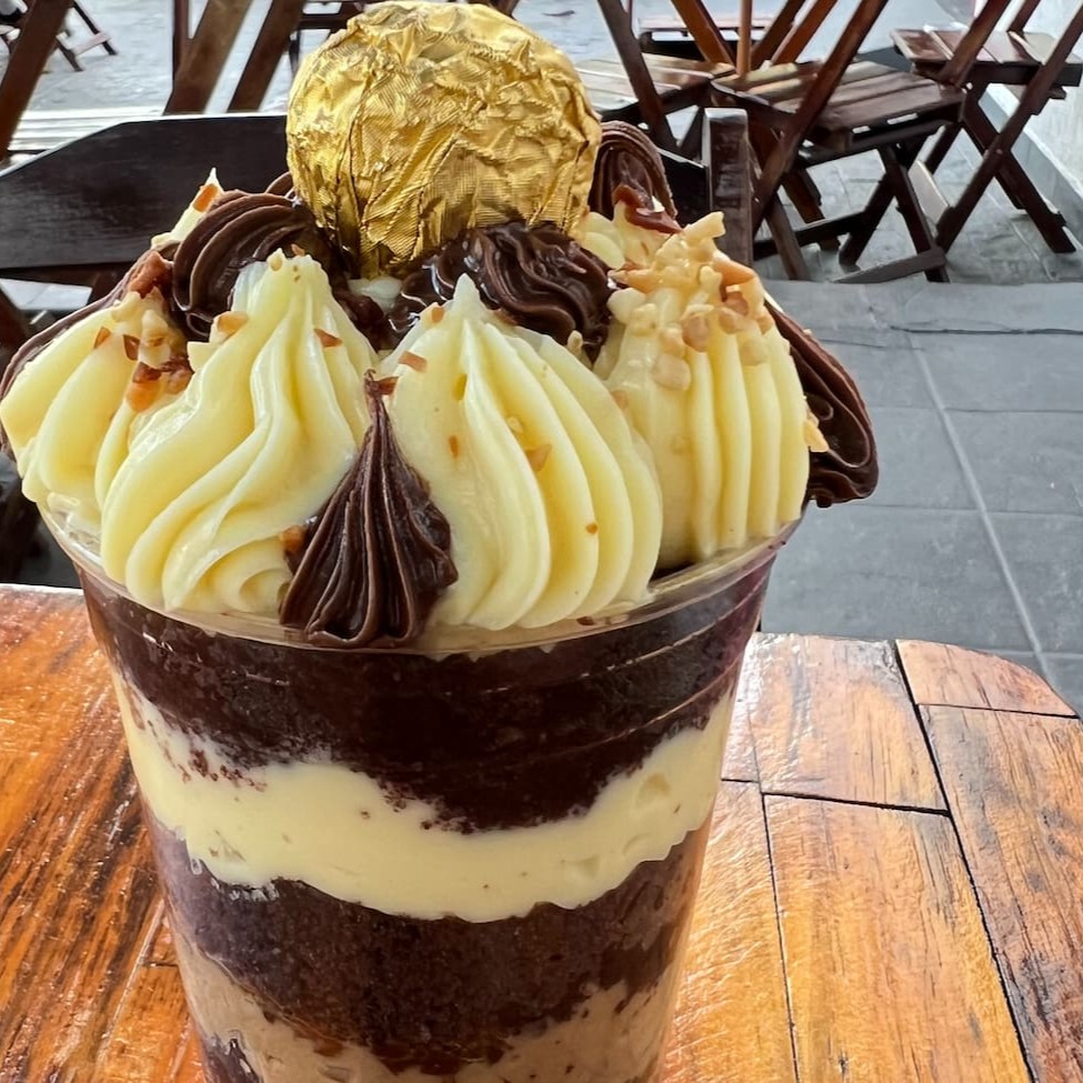 Massa crocante, chantilly, creme e delicioso chocolate meio amargo porção individual