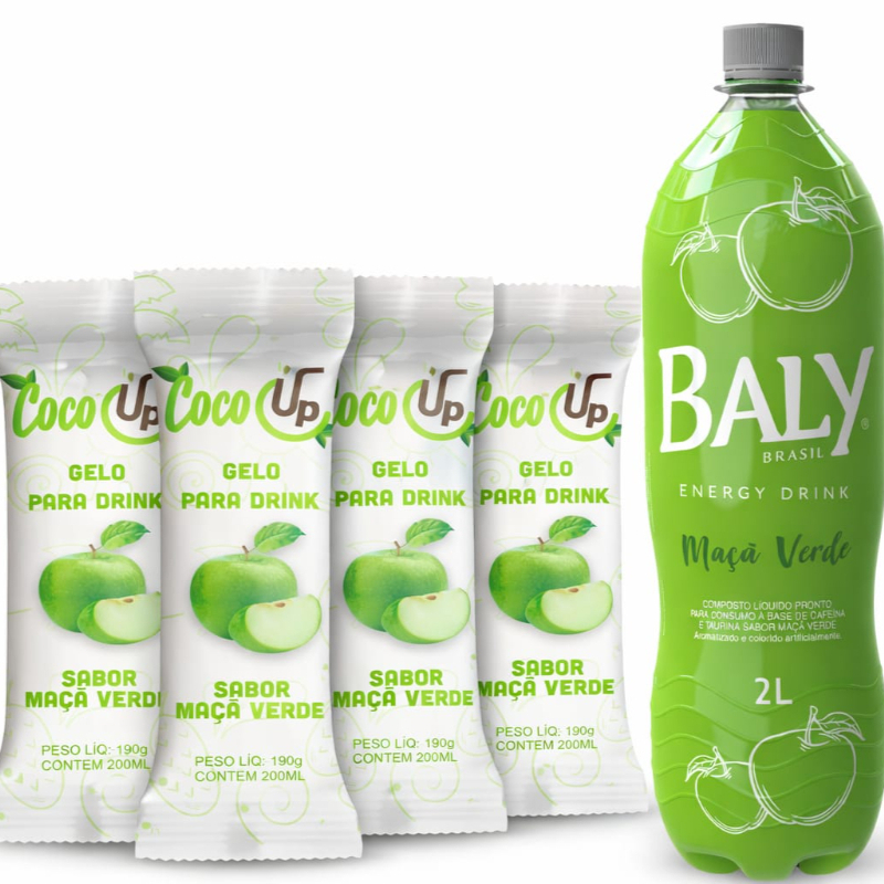 Combo Energético Baly 2l Maça Verde + 4gelo Sabor Maçã