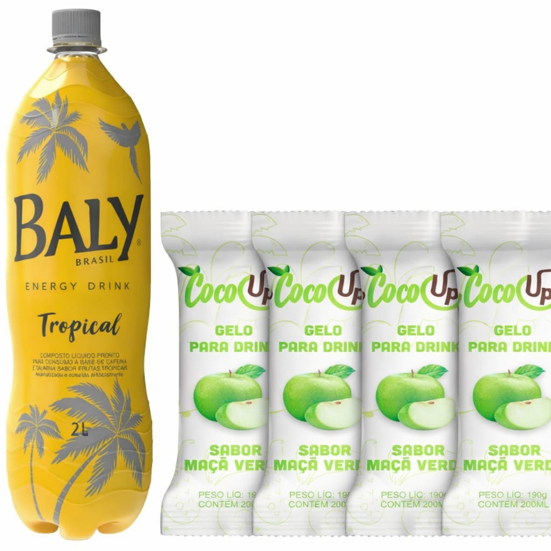 Combo Energético Baly Tropical 2l + 4 Gelo Sabor Maçã Verde
