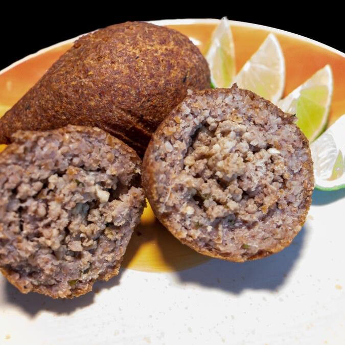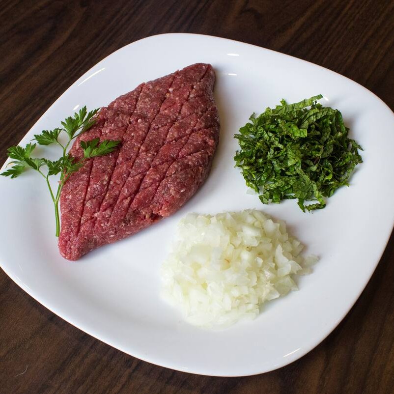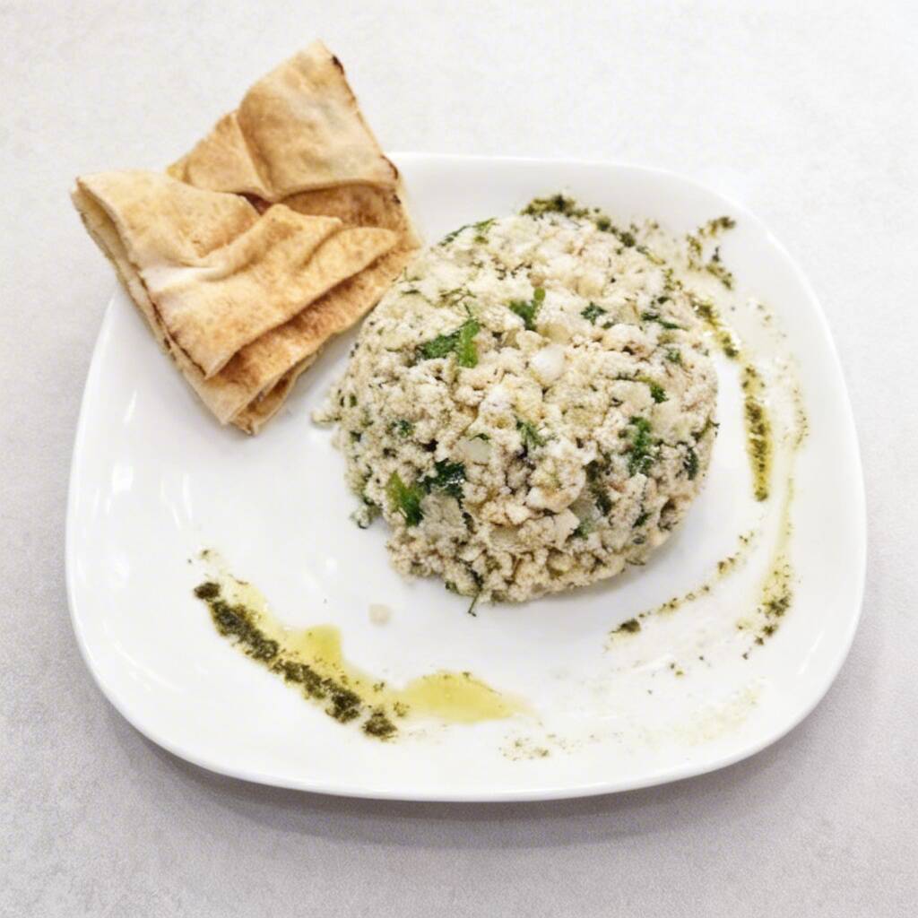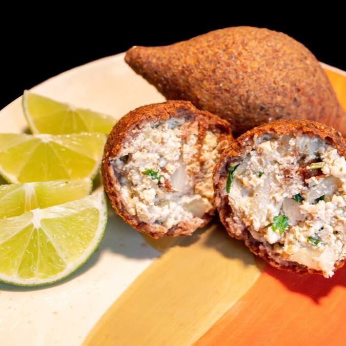 Kibe cru+ homus ou babaganuche ou coalhada seca+ pão sírio.