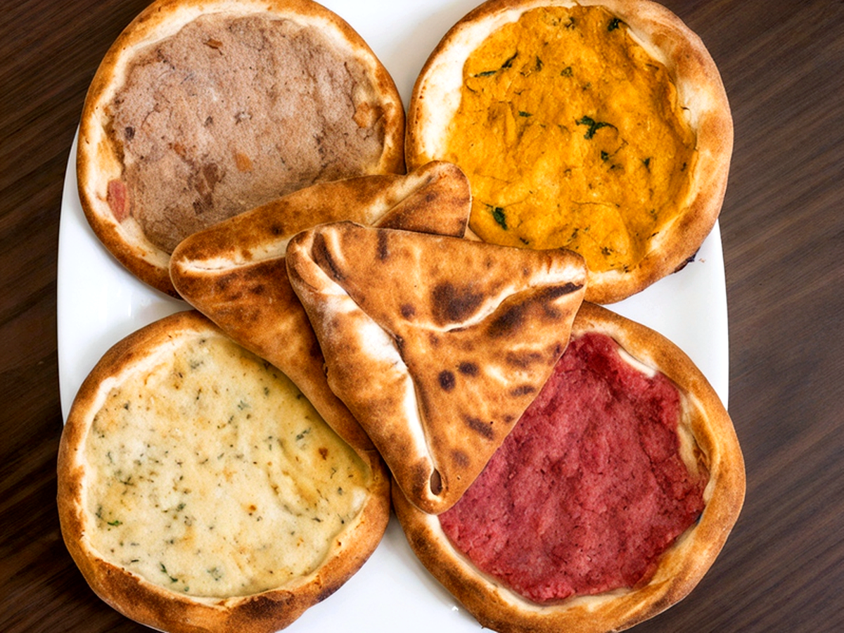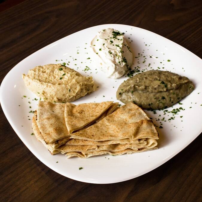 Homus + babaganuche+ coalhada seca+ pão sírio.