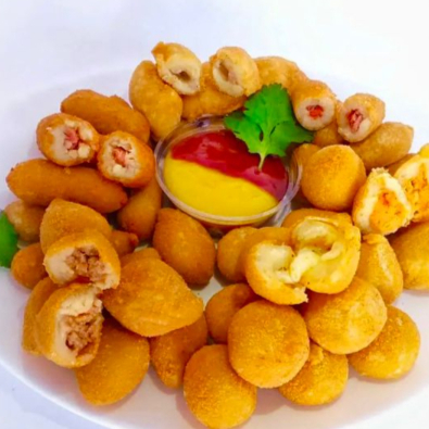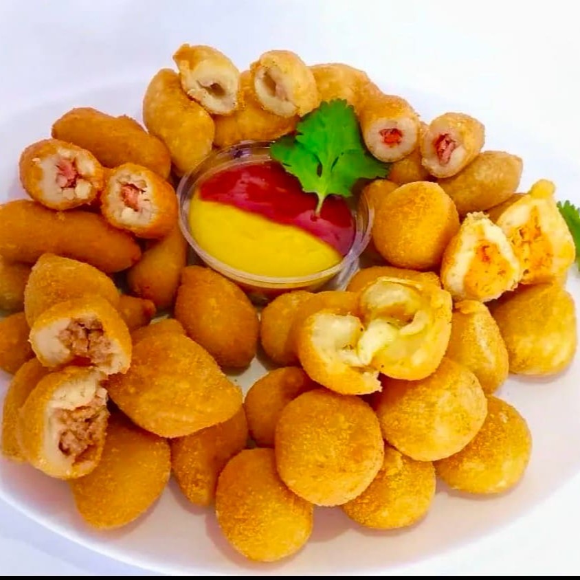 Perfeito para matar a fome com qualidade! São 50 mini salgados crocantes e recheados, feitos na hora. Sabores à escolha: Coxinha de Frango, Bolinha de Queijo, Risole de Presunto e Queijo, Bolinho de Calabresa. (15~17) gramas