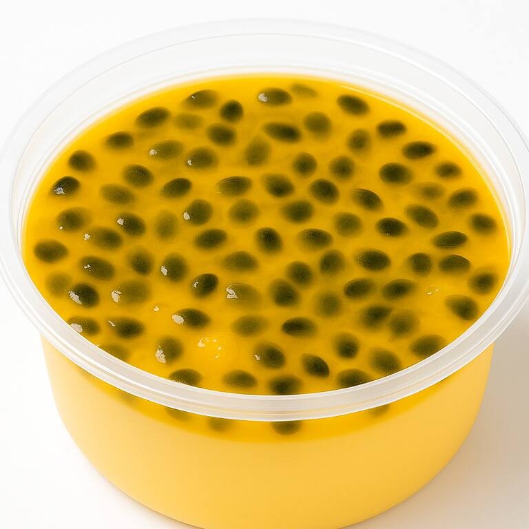 Sobremesa leve e cremosa, com sabor marcante de maracujá e cobertura com sementes naturais.