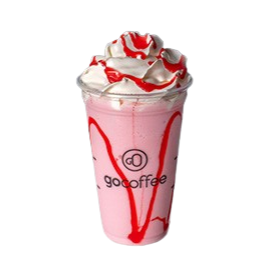 Base de creme + leite + xarope morango + gelo Chantilly e cobertura de morango