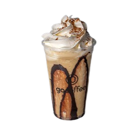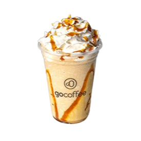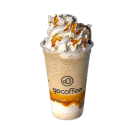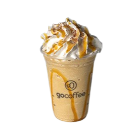 Base de creme + leite + xarope de caramelo + gelo + base de café (opcional) Chantilly , cobertura de caramelo. Pode ser feito sem café. Informe na observação.
