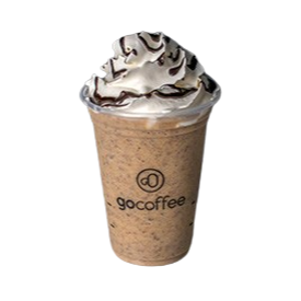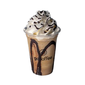 Base de creme + leite + xarope de baunilha + gelo + gotas de chocolate + base de café (opcional) Chantilly , cobertura de de chocolate. Pode ser feito sem café. Informe na observação.