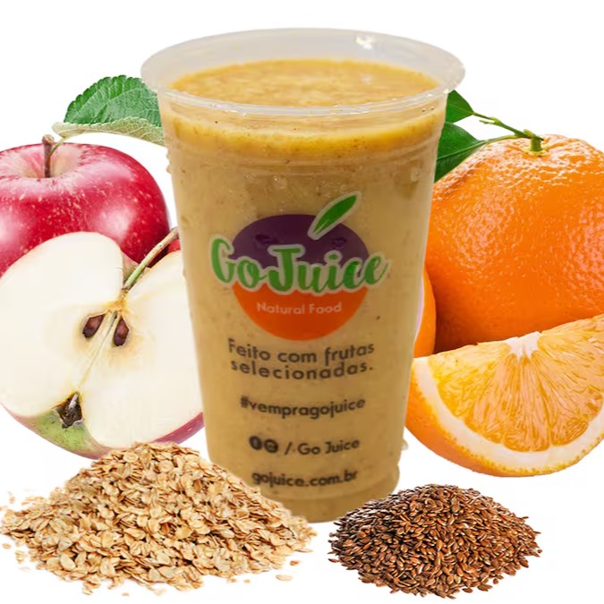 Maçã, laranja, semente de linhaça, aveia
