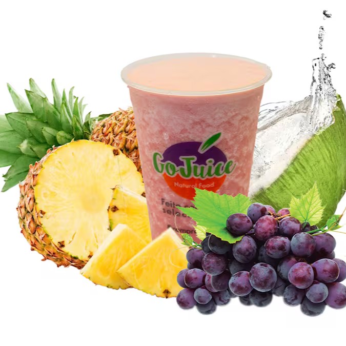 Abacaxi, uva roxa, água de coco.