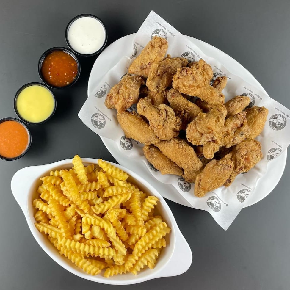 Chicken (sem pimenta) (650g) + Batata frita (400g) + 2 molhos. Os valores são referentes aos pesos dos produtos in natura e podem sofrer alteração por conta do processamento/cozimento. Serve até 2 pessoas (aprox.650g)
