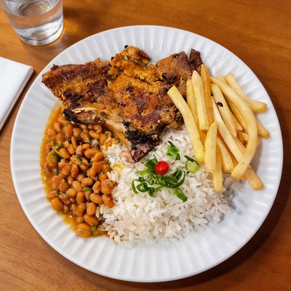 Arroz, feijão ou baião, fritas e Coca-Cola 200ml