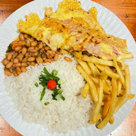 Arroz, feijão e fritas
