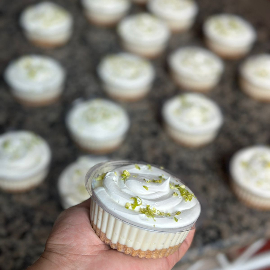 base de biscoito , mousse de limão e finalizado com chantinho e raspas de limão