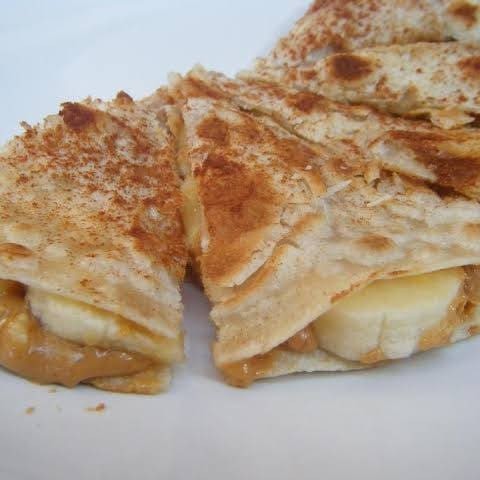Sobremesa em tamanho individual (Quesadilla): Tortilla feita à base de trigo, recheada com rodelas de banana, canela em pó e delicioso doce de leite gourmet. Serve uma pessoas.