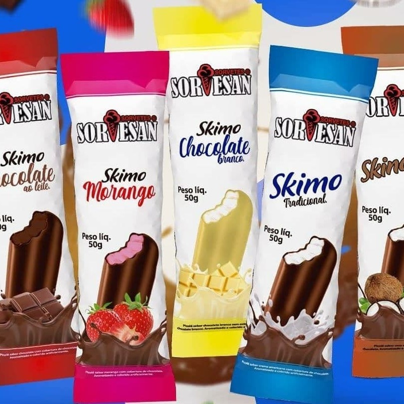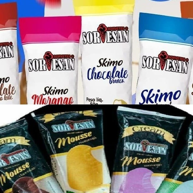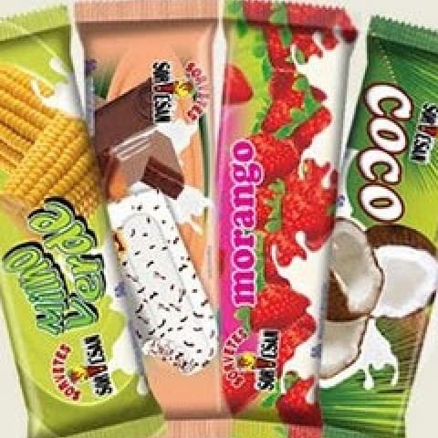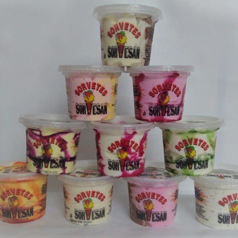 Sabores: Abacaxi ao vinho, Beijinho, Chiclete, Chocolates, Flocos, Limão, Maracuja, Morango, Napolitano, Sunday chocolate, Sunday Morango e Pistache
