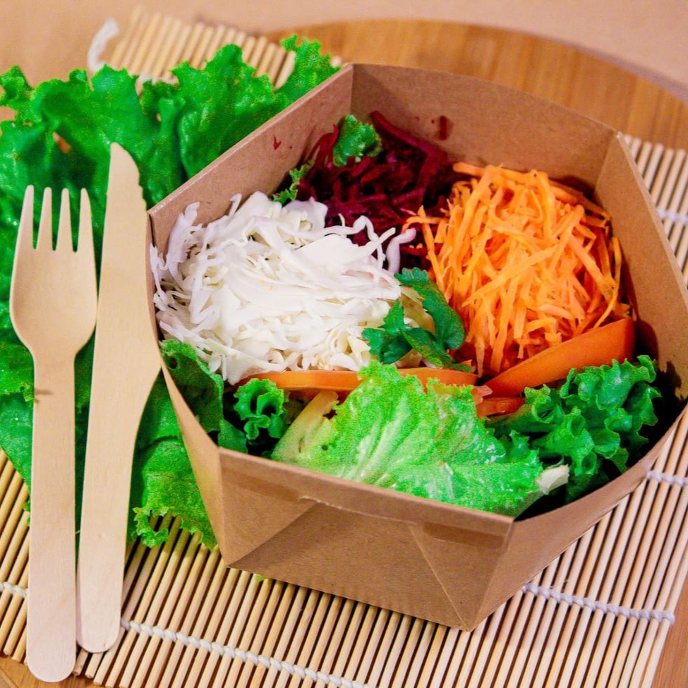 Alface, tomate, cenoura, beterraba e repolho + molho tradicional (vinagre, azeite e sal)