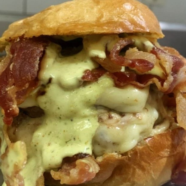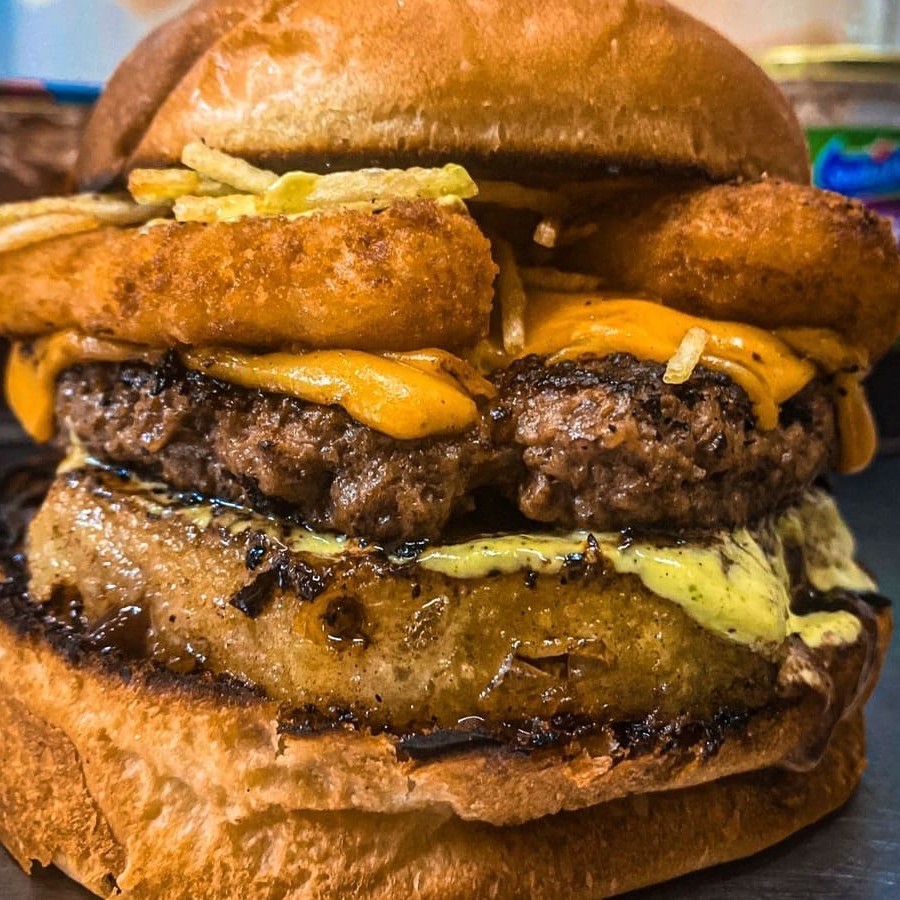 Pão Brioche, Carne De 160g, Queijo Empanado, Maionese Caseira, Batata Palha E Geleia De Amora.