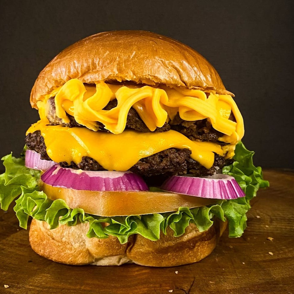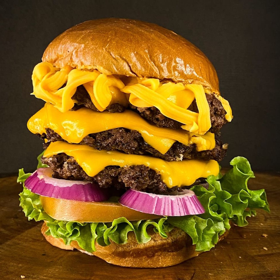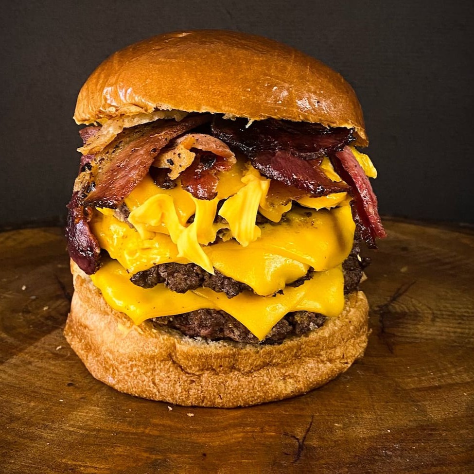 O Burger Bill Duplo, uma estrela da nossa categoria Burgers Premium, é uma experiência culinária irresistível. Composto por um pão Brioche dourado e fofo, abriga duas generosas porções de carne 100g, cuidadosamente selecionadas. O sabor é intensificado pelo queijo cheddar derretido e cebola caramelizada, criando uma combinação perfeita que se destaca ainda mais com a surpreendente adição de goiaba