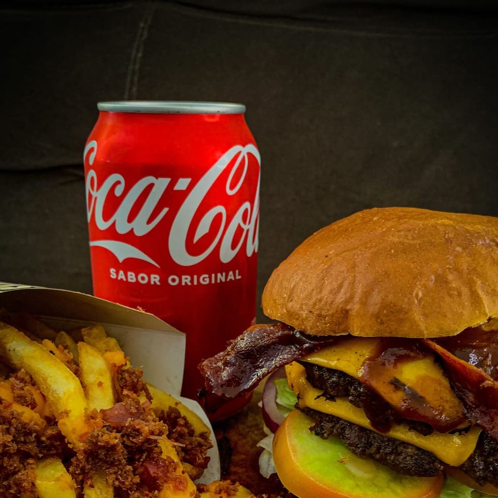 Delicie-se com nosso 'Combo 1 Pessoa Duplo Bacon Salada + Fritas + Coca Cola 350ml' da categoria 'Combos (Mais Pedidos)'. Este pacote de sabor inclui dois suculentos hambúrgueres de 80g cada, cobertos com quatro crocantes fatias de bacon e um generoso toque de queijo cheddar. Adicionamos também uma fresca salada com alface, tomate e cebola roxa para um contraste perfeito. Acompanha ketchup e mosta