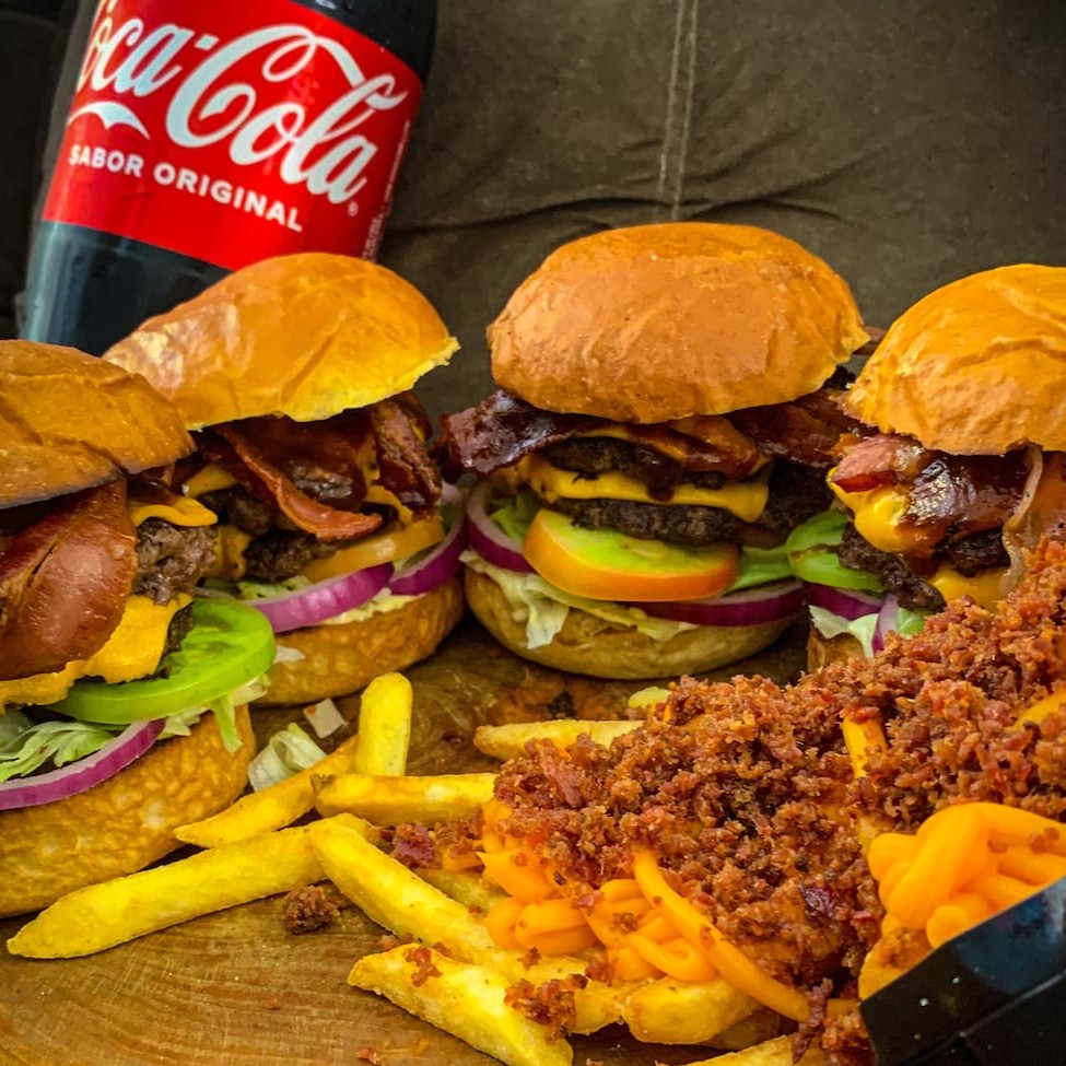 Este Combo para 4 Pessoas Duplo Bacon Salada é uma oferta excepcional, com desconto de até 50% Off neste mês de Janeiro. Consiste em 4 suculentos lanches, cada um contendo duas carnes de 80g harmoniosamente combinadas com 4 fatias de bacon crocantes e cobertas com queijo cheddar derretido. Acompanha uma generosa porção de alface fresca, tomate suculento e cebola roxa para dar aquele toque especial