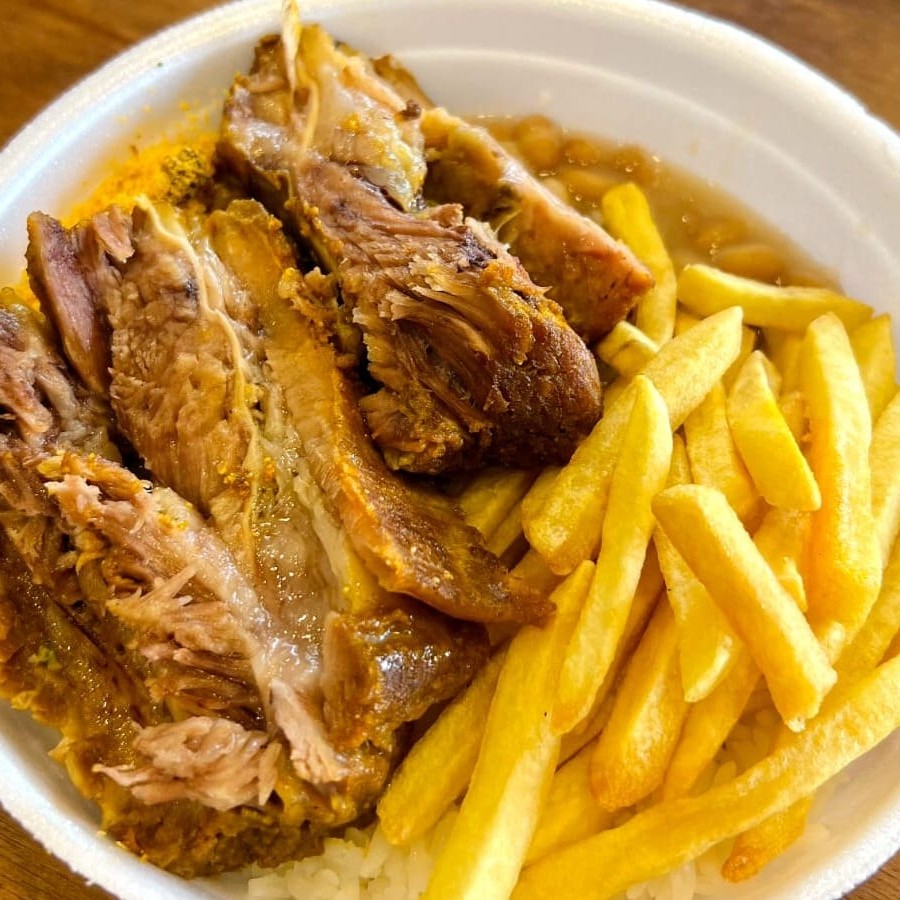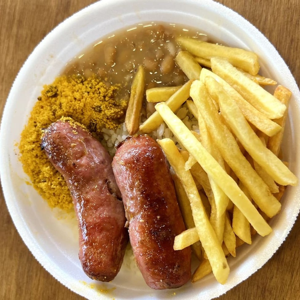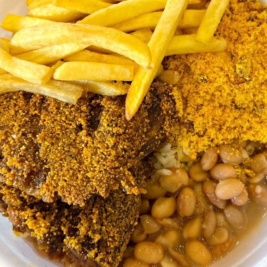 Acompanha: Arroz, feijão, fritas, vinagrete e farofa