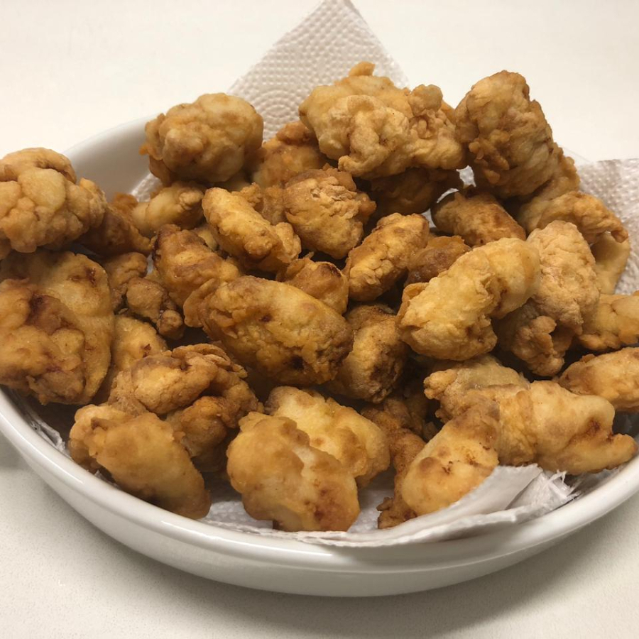 Exótica porção de 400 gramas de isca de jacaré a dorê.