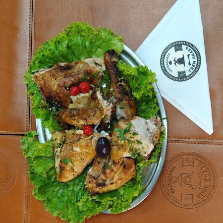 Delicioso nhoque de batata caseiro acompanhado de frango assado.