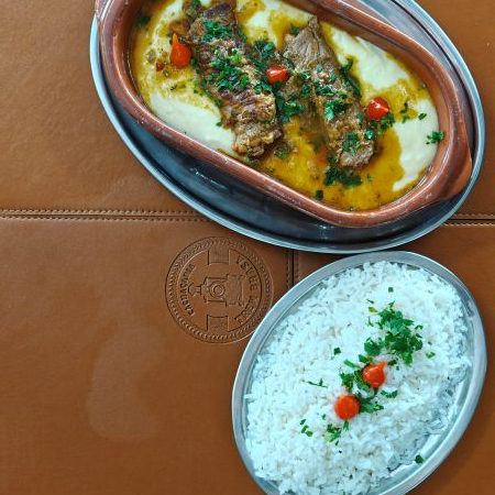 Deliciosa rabada acompanhada de arroz, batata e polenta.