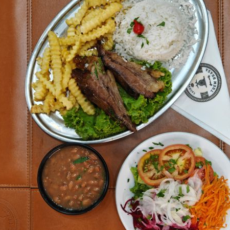 Delicioso costela, acompanha arroz, feijão, fritas, salada.