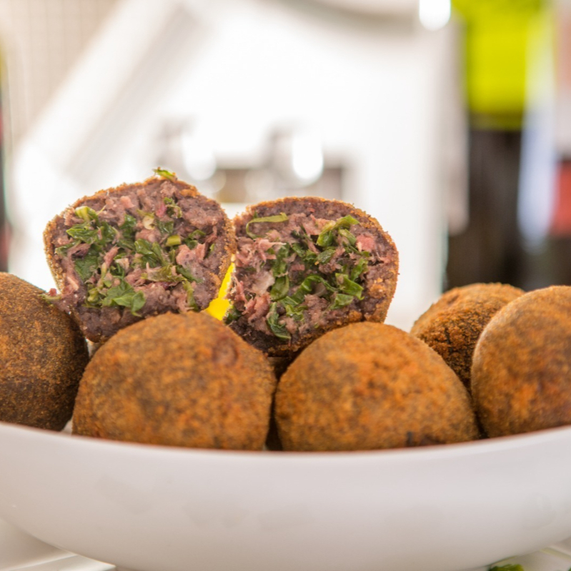 Deliciosa porção com 8 unidades de bolinho de feijoada.