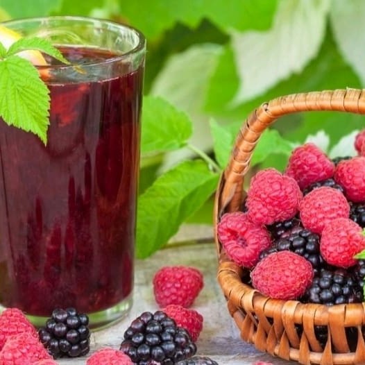 O suco de amora com framboesa oferece benefícios como ação antioxidante, reforço do sistema imunológico, melhora da saúde cardiovascular e auxilia na prevenção do envelhecimento precoce.