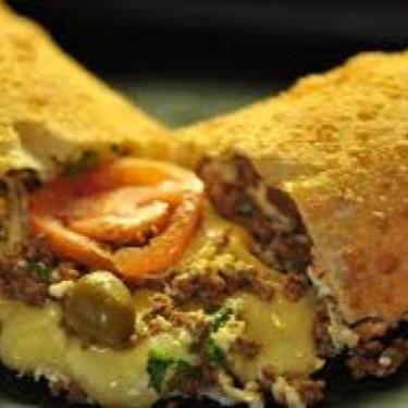 Carne, queijo,ovo , presunto, azeitona e tomate