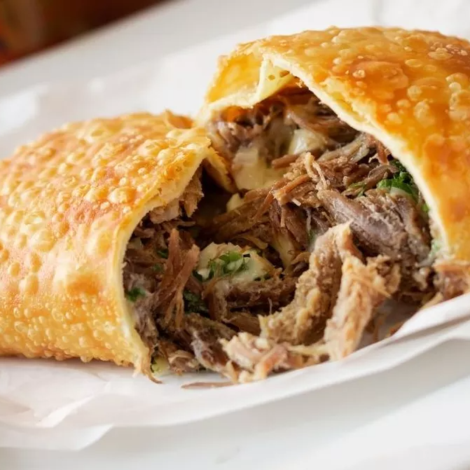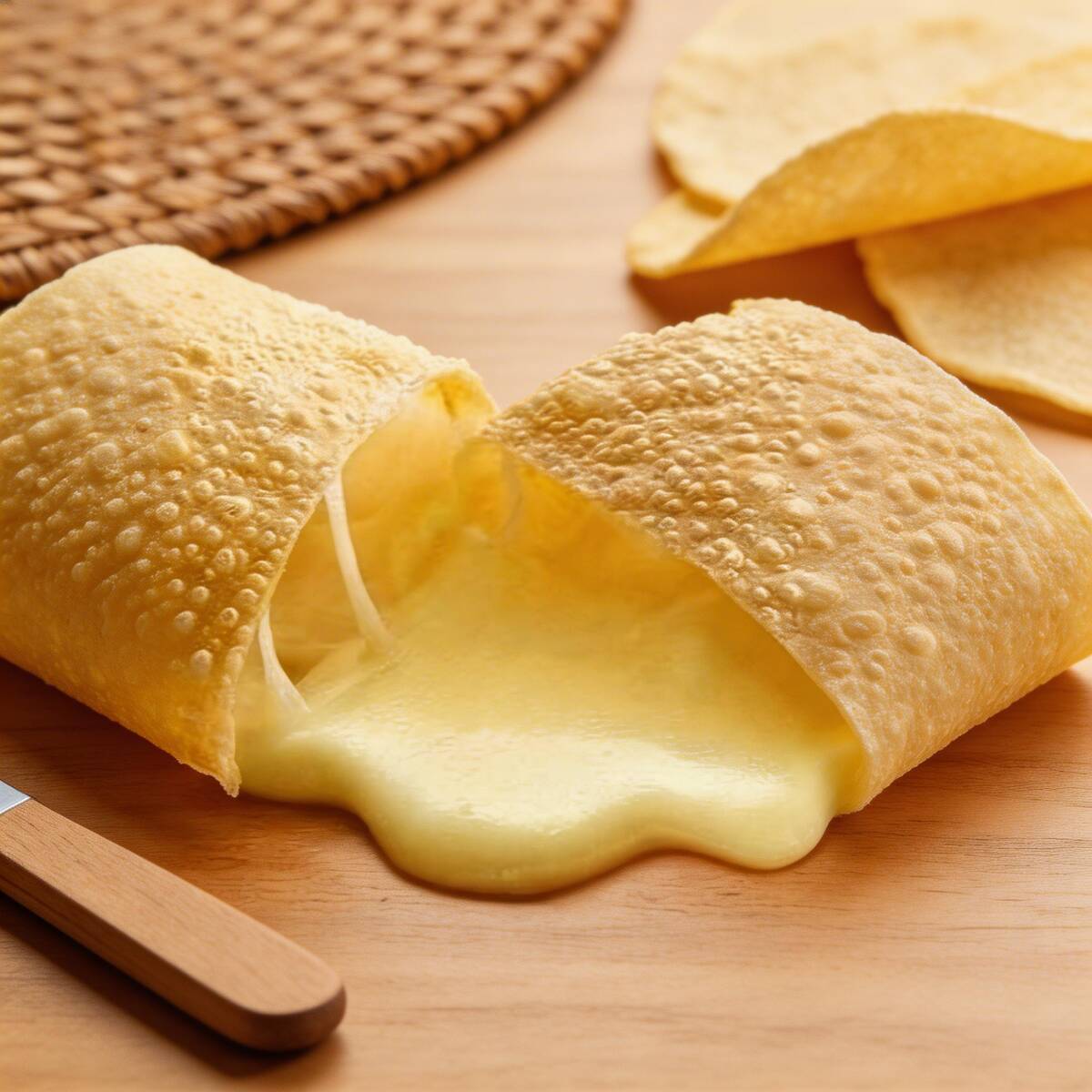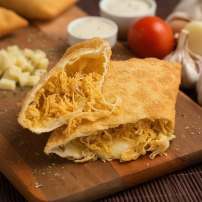 Pastel frito recheado com queijo, irresistivelmente crocante e saboroso.