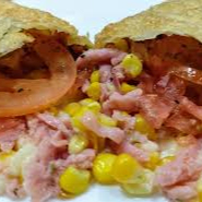 carne , queijo ,ovo ,presunto, azeitona e tomate
