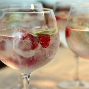 Uma garrafa de gin rocks, + 4 gelos de morango + 1 energético de pêssego+ 1 taça exclusiva da rocks