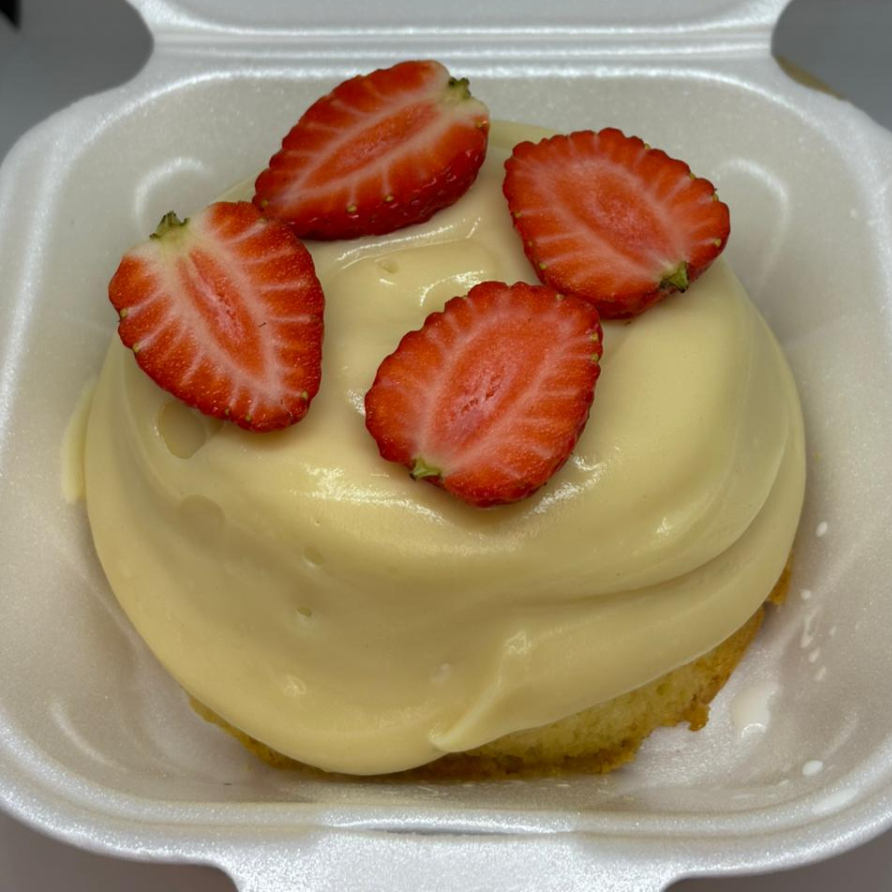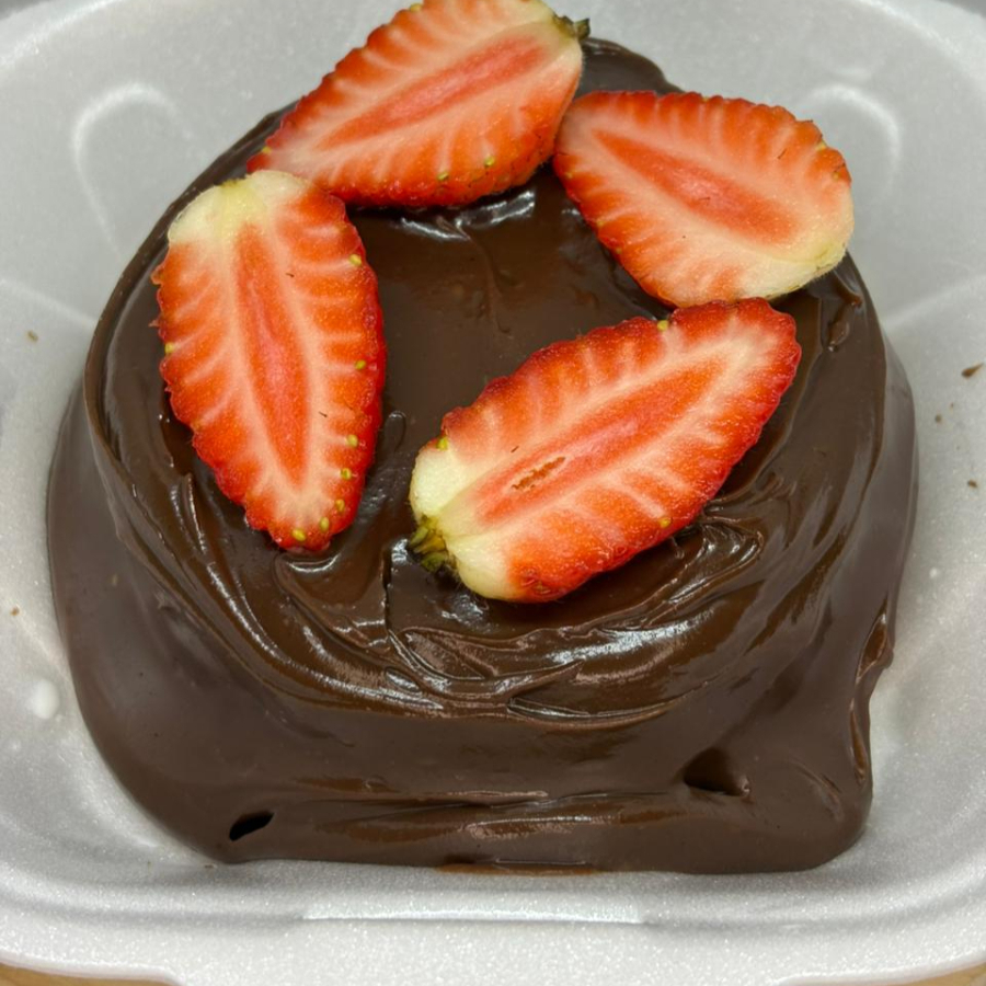 "Encante-se com nosso mini vulcão artesanal, preparado com uma massa suave e delicadamente molhadinha de leite Ninho. Coberto com um cremoso e irresistível creme de Ninho e finalizado com morangos frescos que trazem o equilíbrio perfeito entre doçura e frescor. Uma explosão de sabor que conquista logo na primeira colherada."
