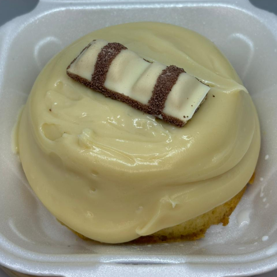 "Descubra o sabor do nosso exclusivo Mini Vulcão King White: um bolo individual feito com massa de leite Ninho, leve e úmida na medida certa. Finalizado com generosos pedaços de Kinder Bueno e uma decoração delicada no topo, essa sobremesa é perfeita para quem busca uma explosão de sabor com um toque sofisticado e irresistível."