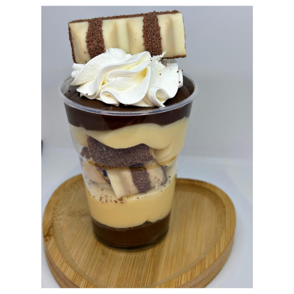 Prepare-se para se apaixonar. Este copo harmoniza a leveza e doçura do nosso exclusivo Creme de Leite Ninho com a profundidade e o toque levemente amargo do nosso luxuoso Creme de Chocolate 50% Belga. A cada camada, você descobrirá a textura macia e o sabor inconfundível dos nossos pedaços de Brownie recém-assado. Uma joia gastronômica, decorada com um topo de brownie que garante a perfeição do primeiro ao último suspiro. Simplesmente irresistível.